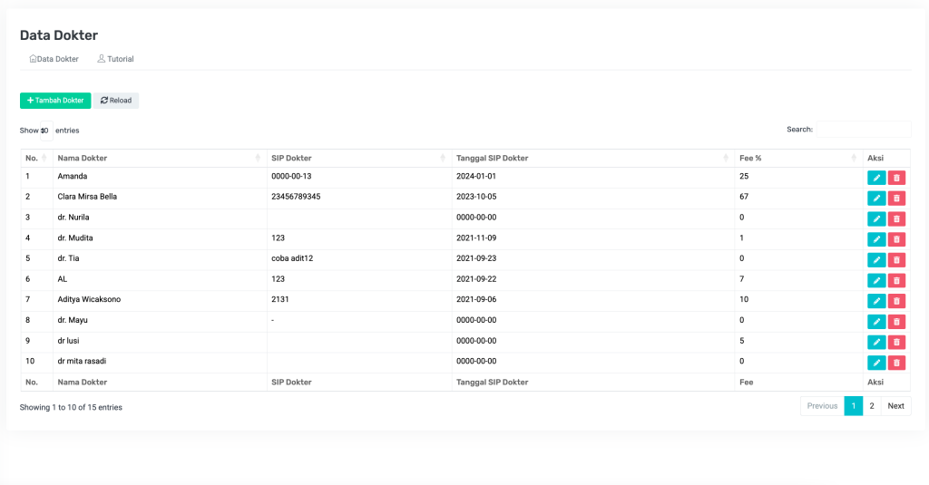 - + Tambah Dokter: Untuk menambahkan data dokter baru.